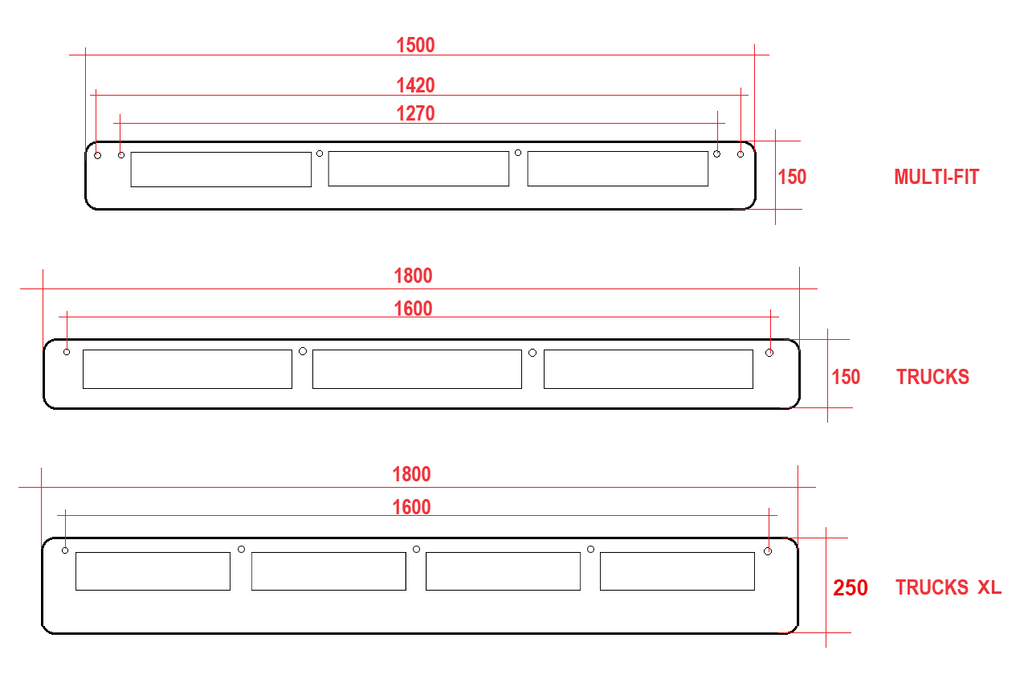 | Size Range | Fits windscreen bottom width 1600 - 1800 mm |