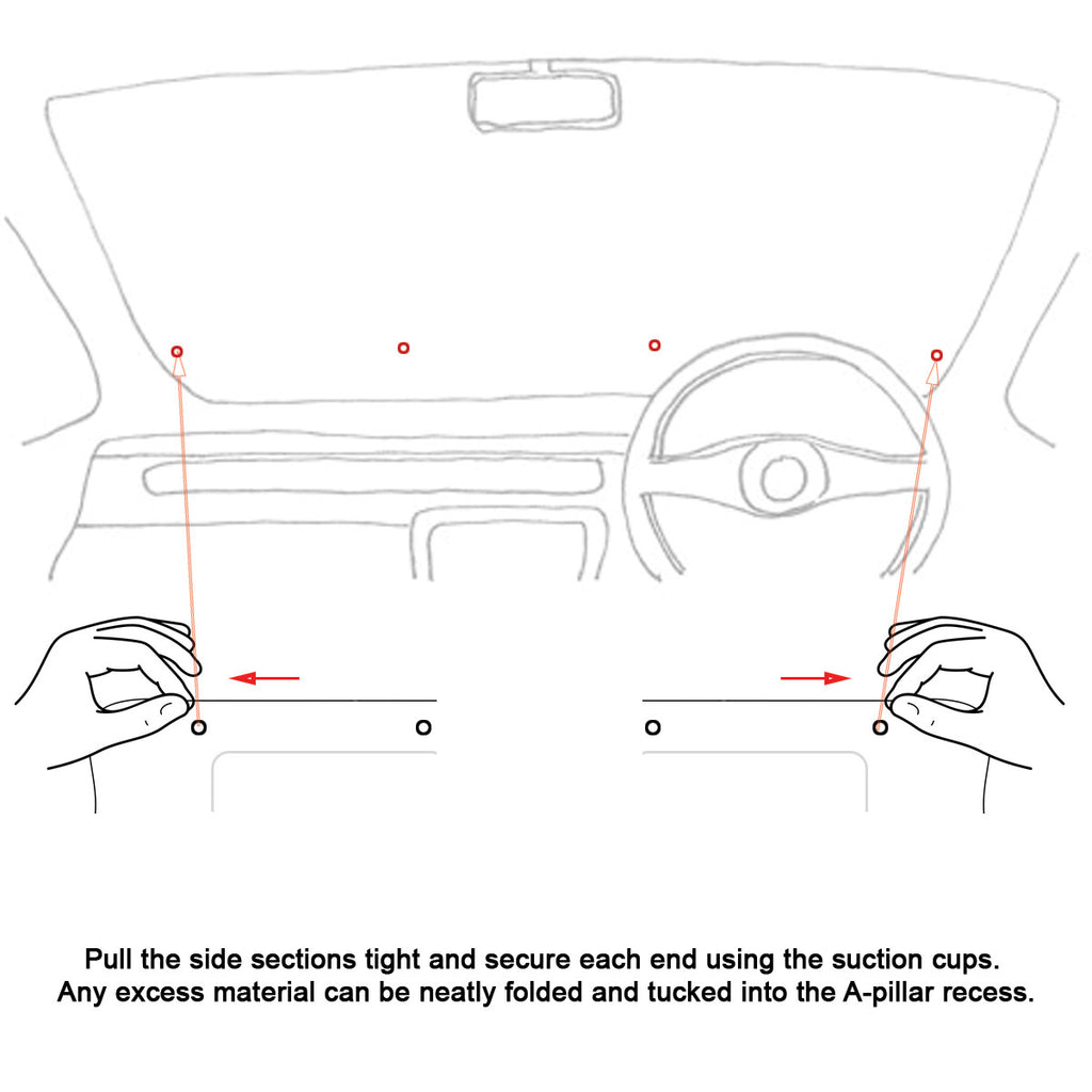 - Secure with Suction Cups: Utilize the four suction cups provided to secure the top edge of the shade onto the windshield glass, ensuring a firm and reliable placement.
